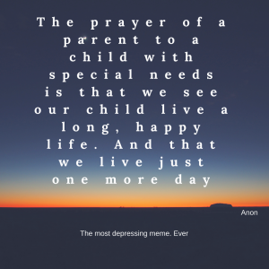 support / July 20, 2017 The prayer of parent to a child with special needs is that we see our child live a long, happy life. And that we live just one more day Tweet Follow me Tweet Follow me Follow: